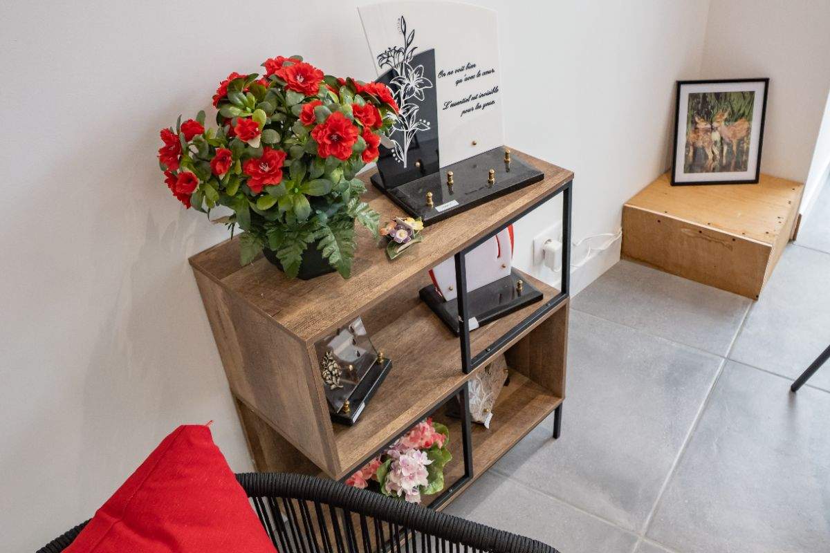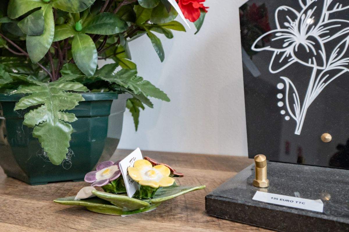 Ces objets intègrent des éléments significatifs : motifs, citations ou photographies. Les plaques funéraires perpétuent le souvenir tandis que les urnes deviennent un symbole discret de présence.